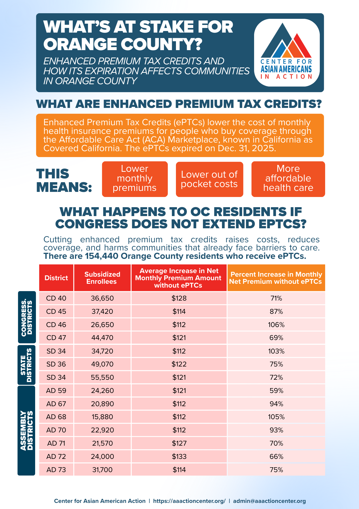 More than 160,000 residents across the seven Orange County Assembly districts rely on subsidized coverage, with AD 73 alone covering over 31,000 subsidized enrollees.